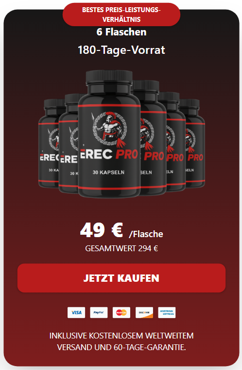 “Ich muss zugeben, ich war anfangs skeptisch, aber ErecPro hat meine Erwartungen wirklich übertroffen. Mein Stoffwechsel arbeitet spürbar besser und ich fühle mich jeden Tag viel selbstbewusster. Absolut jeden Cent wert.”